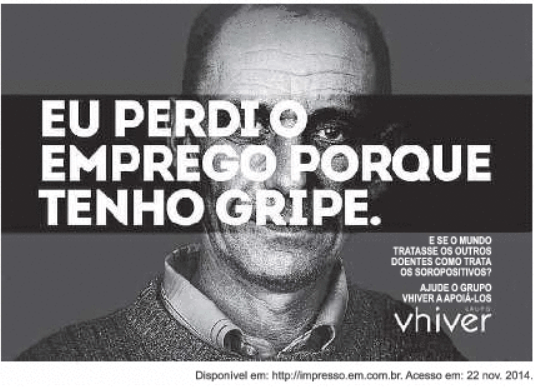 Dessa forma, pode-se inferir que o texto faz um apelo à população para que contribua com ações a favor de indivíduos portadores do vírus HIV.