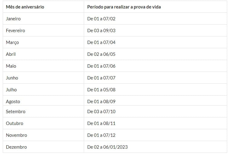 Importante ressaltar que a partir de 2022 as datas para realizar a prova de vida terão novos moldes, de modo que o calendário será conforme o mês de aniversário do segurado. Confira as datas no tópico a seguir: