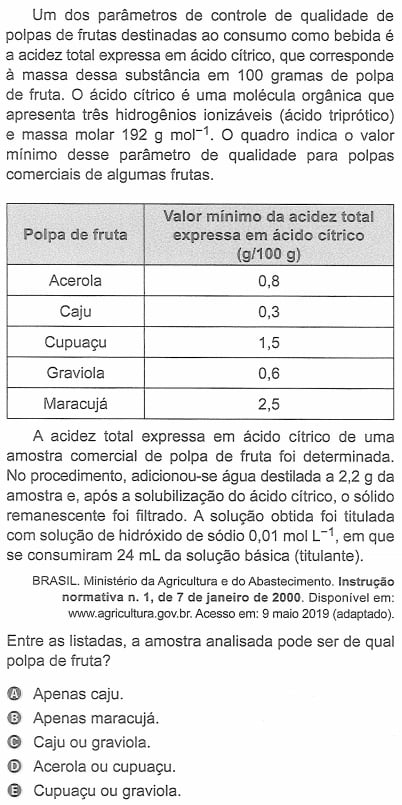 Confira abaixo uma questão do Enem 2019: