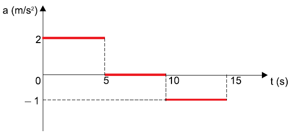 Sabendo que o móvel se encontrava inicialmente em repouso, sua velocidade, em m/s, no instante 15 s, é igual a