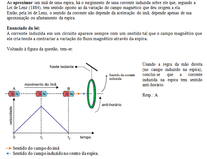 E) no sentido anti-horário entre t0 e t1 e não haverá corrente induzida entre t1 e t2.