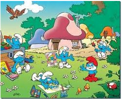 (Sudamérica/2012) A figura abaixo refere-se ao desenho animado “Os Smurfs”, que foi transformado em filme e exibido no Brasil em 2011.
