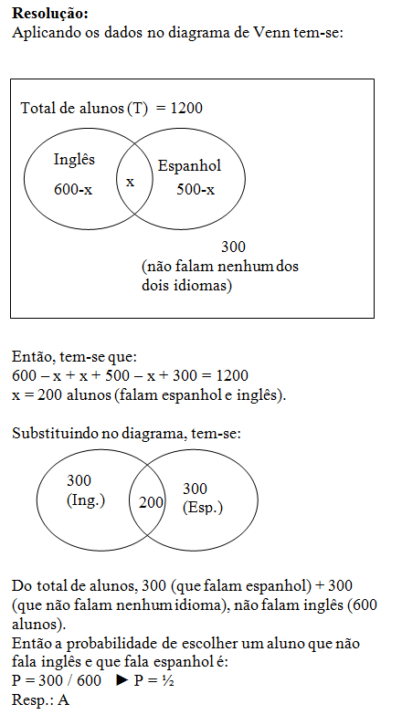 Nessa pesquisa constatou-se que 600 alunos falam inglês, 500 falam espanhol e 300 não falam qualquer um desses idiomas.