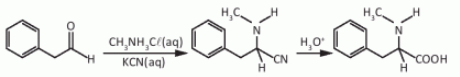 O aminoácido N-metil-fenilalanina pode ser obtido pela mesma sequência reacional, empregando-se, em lugar do cloreto de amônio (NH4Cl), o reagente CH3NH3Cl.