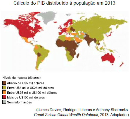 A partir da leitura do mapa e de conhecimentos acerca da distribuição de riqueza no mundo, é correto afirmar que