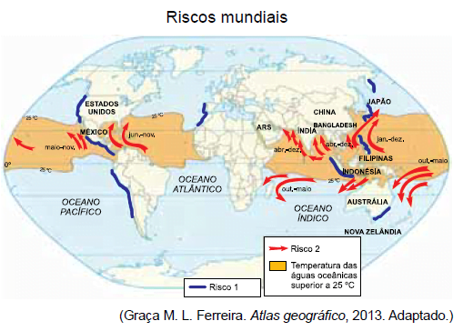 Considerando as áreas de incidência dos fenômenos em questão, é correto afirmar que os riscos 1 e 2 são, respectivamente,