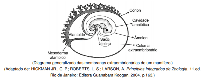 Com base na figura e nos conhecimentos sobre anexos embrionários dos amniotas, assinale a alternativa correta.