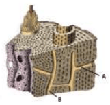 A corresponde ao canal de Volkmann (canal perfurante pela nomenclatura mais recente), enquanto B corresponde ao canal de Havers (canal central pela nomenclatura mais recente). Por estes canais circulam vasos sanguíneos e nervos.