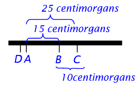 Em primeiro lugar, é necessário lembrar de que quanto maior a taxa de permuta, maior a distância entre dois genes. Dessa forma, os genes A e C são os mais distante, enquanto os genes A e D estão muito próximos.