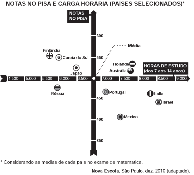 O cruzamento da quantidade de horas estudadas com o desempenho no Programa Internacional de Avaliação de Estudantes (Pisa) mostra que mais tempo na escola não é garantia de nota acima da média.
