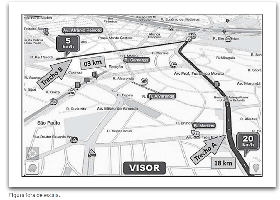 (FATEC/2015) O aplicativo Waze, instalado em tablets e smartphones, tem sido usado com frequência para auxiliar os motoristas a “fugirem” do trânsito pesado das grandes cidades. Esse aplicativo consegue apresentar ao usuário uma boa rota alternativa e o tempo estimado para chegada ao destino, baseando-se tão somente nas distâncias e velocidades médias dos diversos usuários nessas rotas.