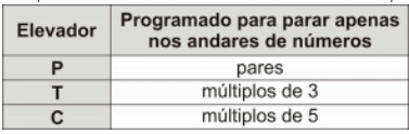 ( ) Não há possibilidade de um mesmo andar receber os três elevadores P, T e C