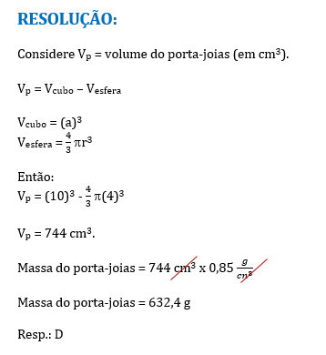 do porta-joias era de 0,85 g/cm3 e admitindo π ≅ 3, a massa