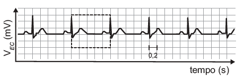(Enem/2021) O eletrocardiograma é um exame cardíaco que mede a intensidade dos sinais elétricos advindos do coração. A imagem apresenta o resultado típico obtido em um paciente saudável e a intensidade do sinal (VEC ) em função do tempo.