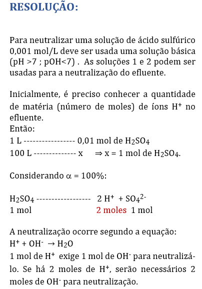 de ácido sulfúrico (H2SO4) 0,01 mol · L–1. Para o tratamento desse efluente, o operador de processos químicos utilizou uma das soluções relacionadas na tabela.