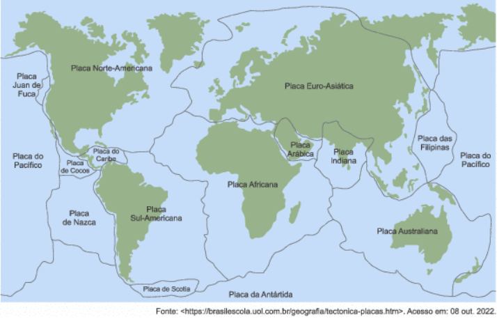 Considere as seguintes afirmações sobre a movimentação das placas tectônicas e a formação do relevo terrestre e submarino.