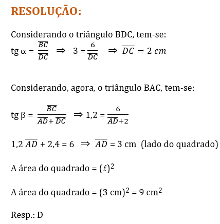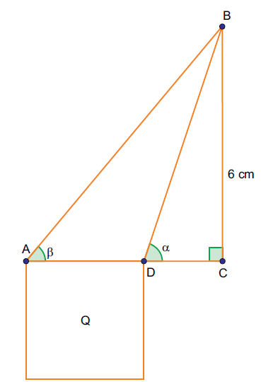 Sabendo que tg α = 3 e tg β = 1,2, a área do quadrado Q é