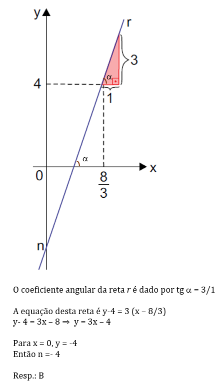 (Famerp/2015) O gráfico indica uma reta r, que intersecta o eixo y no ponto de coordenadas (0, n).