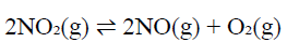 Como todos os componentes estão no estado gasoso é preciso, inicialmente, verificar o número de moles nos reagentes (2 moles de NO₂) e o número de moles nos produtos ( = 3 moles ⇒ 2 moles de NO + 1 mol de O₂).