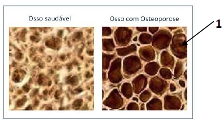 (UVV/2025) A osteoporose (1), doença que afeta muitos idosos causando fraturas e quedas nessa população, cursa com perda gradativa da matriz óssea, alterando o processo de remodelação óssea, enfraquecendo ossos e tornando-os quebradiços.