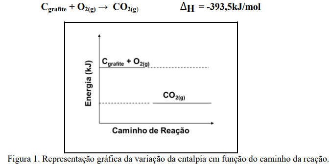 Analisando o gráfico, verifica-se que o produto (CO2) está em um nível energético inferior ao dos reagentes, indicando que o processo libera calor para o meio (processo exotérmico). Isso também pode ser concluído pelo valor negativo do ΔH.