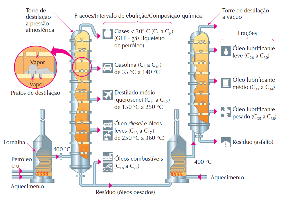 Com referência à destilação fracionada do petróleo cru na imagem acima, assinale a alternativa correta.