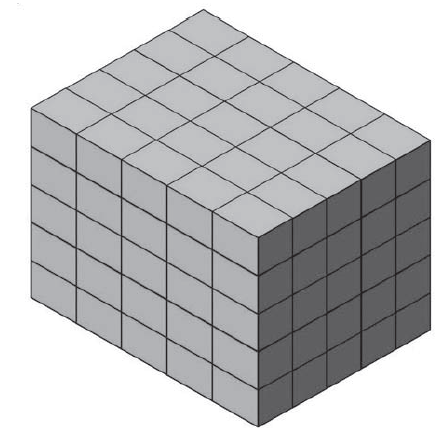 (Enem/2014 – PPL) Uma fábrica de rapadura vende seus produtos empacotados em uma caixa com as seguintes dimensões: 25 cm de comprimento; 10 cm de altura e 15 cm de profundidade. O lote mínimo de rapaduras vendido pela fábrica é um agrupamento de 125 caixas dispostas conforme a figura.