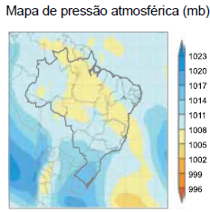 precipitação, pressão atmosférica e umidade relativa do ar no território brasileiro, captados às 12 horas do dia 27 de outubro de 2010, para responder às questões 01 e 02.