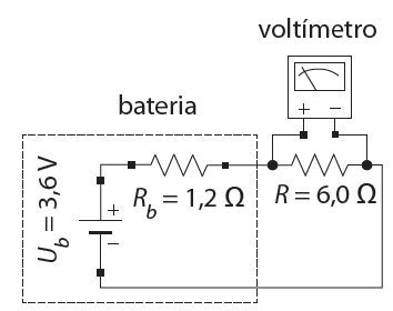 Na situação exemplificada na figura, a diferença de potencial registrada pelo voltímetro é