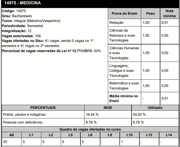 - 0 vagas ofertadas no Sisu – ações afirmativas;