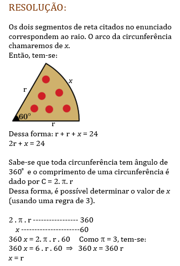 (UPE-SSA 2021) Uma empresa de design está desenvolvendo um cartão de visita para uma pizzaria. Este cartão deverá ter o formato de um setor circular construído com um ângulo central de 60º, conforme a figura a seguir: