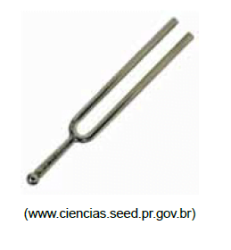 (Famerp/2015) A figura mostra um diapasão, instrumento metálico que, ao ser golpeado, emite ondas sonoras com frequência correspondente a determinada nota musical.