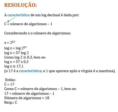 Sabendo que log 2 ≅ 0,30, o número de algarismos de 257 é