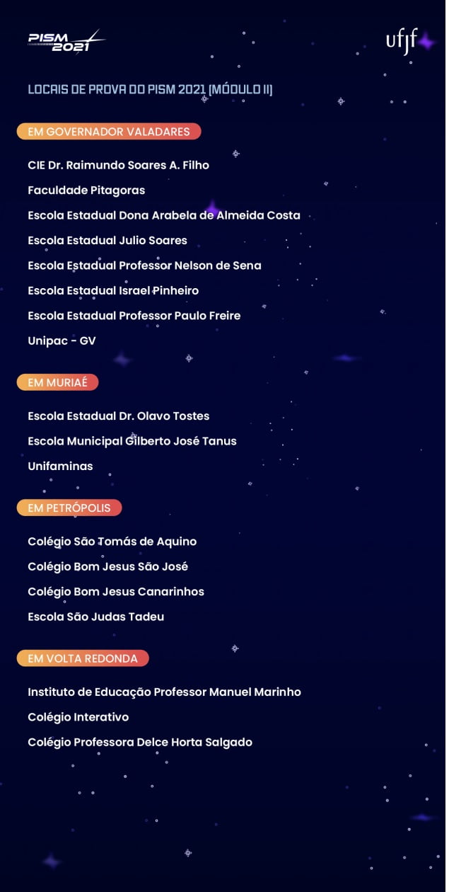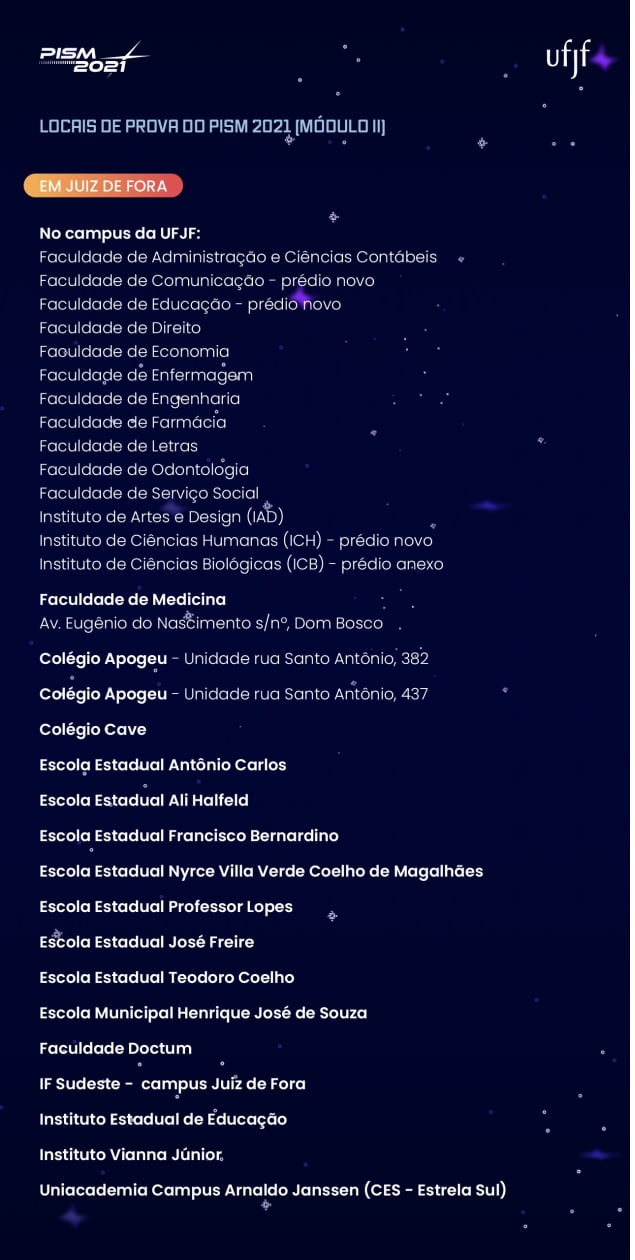 O candidato deverá utilizar máscara durante todo o percurso – o item também é indispensável para a realização do Pism. As provas serão iniciadas às 13h nas cinco cidades.