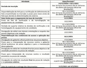 A inscrição será realizada de 14 de dezembro a 11 de janeiro de 2021, por meio do site da Cebraspe, com taxa de inscrição no valor de R$ 150,00.